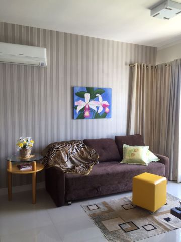 Apartamento 01 dorm, split na sala, ventilador de této no dorm, máq. De lavar, junto á praça e 50 mts do Mar.