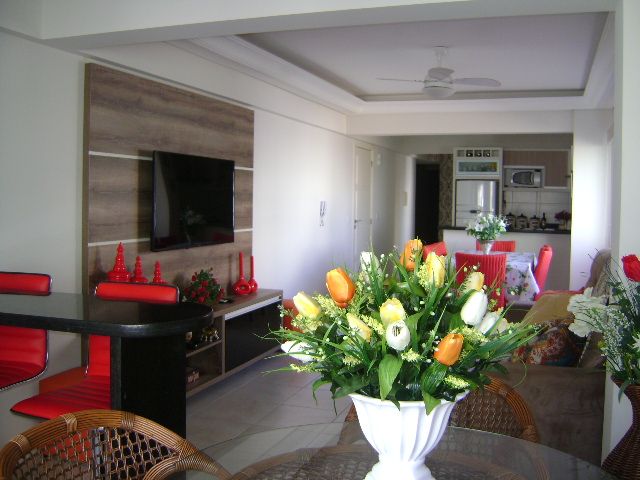 Apartamento 03 dorm, 01 suíte, banho social, ampla sala com churrasqueira, jantar e estar, cozinha, lavanderia, prédio com 02 elevadores, infraestrutura completa, vaga de garagem, a 50 mts da praça e mar, com ventiladores de této em todas as peças, sky e Wifi