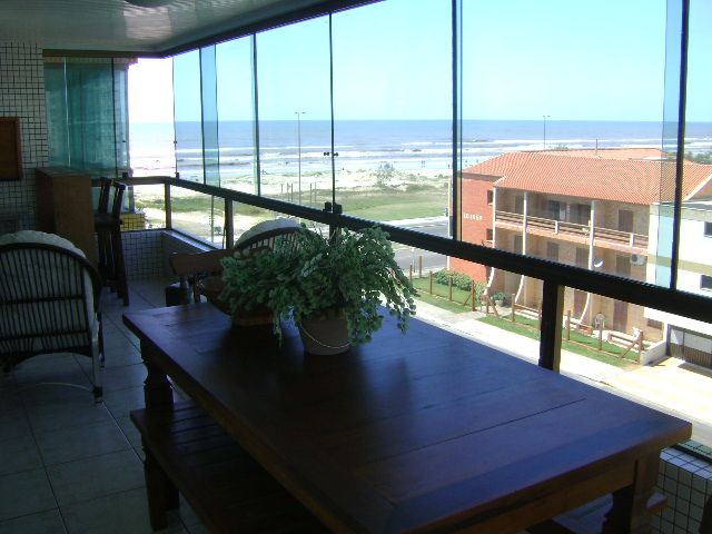 VISTA PARA O MAR - Excelente apartamento 03 dorm, 01 suíte, banho social, lavabo, ampla sala, sacada com churrasqueira, cozinha, lavanderia, prédio com 02 elevadores, vaga de garagem, com ar split.