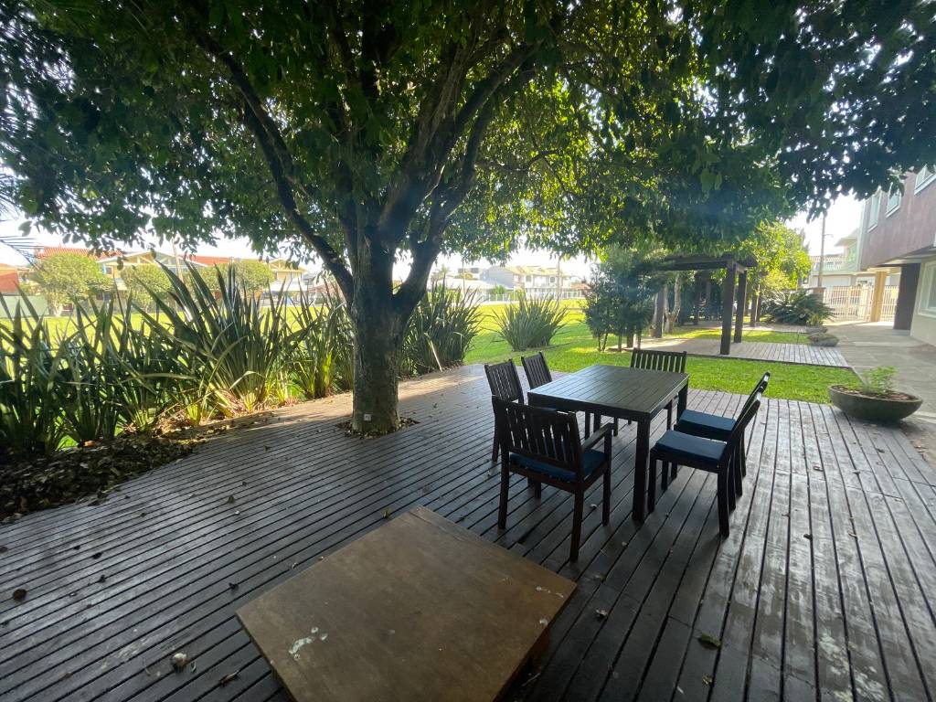 Sobrado com 3 dormitórios (3 suítes - 1 master com closet e sacada + 1 americana), living 2 ambientes, lavabo, cozinha integrada com churrasqueira, área de serviços, varandas e garagem para 2 veículos. Mobiliada! Dormitórios climatizados! Amplo pátio com deck e área de lazer! Localizado a apenas 2 quadras da praia, no Centro de Xangri-lá!